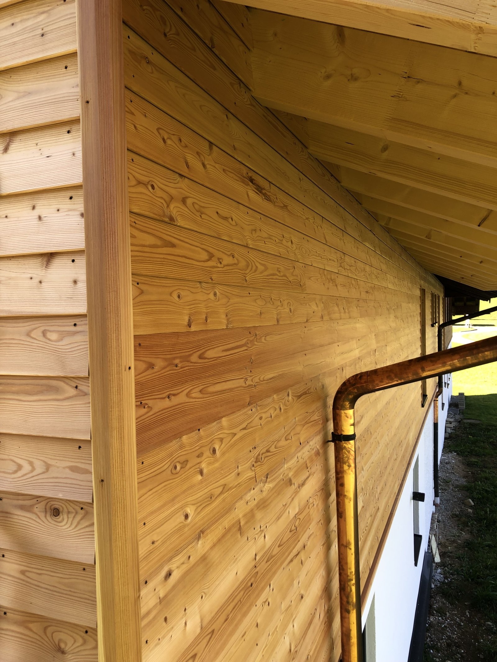 Schindelfassade - Lattenfassade - Bodendeckelschirm - Rhombusfassade - geschlossene Fassadenverkleidung mit verschiedenen Eckschlössern.